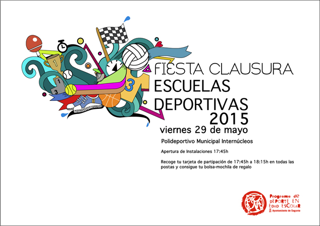 Cerca de 2.000 niños y niñas del municipio participarán hoy, viernes 29 de mayo, a partir de las 17.45 horas, en la fiesta de clausura del curso 2014-2015 de las Escuelas de Iniciación Deportiva, organizada por el departamento de Deportes del Ayuntamiento de Sagunto, y que tendrá lugar en el polideportivo municipal de internúcleos. Se trata de la fiesta del deporte para los más pequeños y es una jornada de puertas abiertas en la que pueden participar tanto los niños y niñas que durante el curso han formado parte de las escuelas como para cualquier otro niño de la población (niños entre 6 y 16 años).
